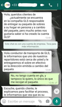 Los destinatarios de estos mensajes deben informar a GLS inmediatamente y bajo ninguna circunstancia atender los requerimientos de pago o datos personales. No es recomendable intentar desenmascarar a los delincuentes pues en caso de ser un intento de estafa aleatorio, les estará confirmando que la cuenta sigue activa y, por consiguiente, la volverán a utilizar en próximas estafas.