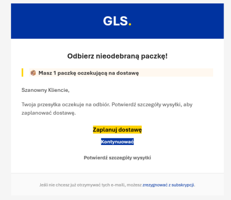 Oszustwa internetowe, związane z transportem paczek stają się ostatnio coraz bardziej powszechne. Przestępcy nadużywają nazw i logo znanych firm transportowych, takich jak GLS, w celu popełnienia oszustwa lub uzyskania dostępu do poufnych informacji.