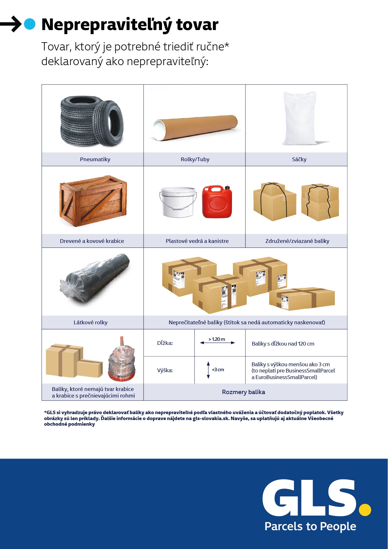 Andorra, Ceuta, Cyprus, Gibraltar, Grécko Livigno, Malta, Melilla, San Marino, Nórsko, Srbsko, Švajčiarsko, Turecko a všetky európske ostrovy(okrem Veľkej Británie a Írska) sú vylúčné z doručenia v EÚ cez GLS Parcel Shopy.